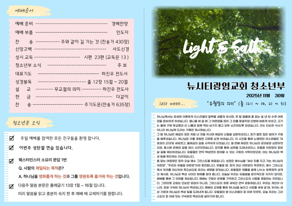 미리보는 11월 30일 청소년부 주보