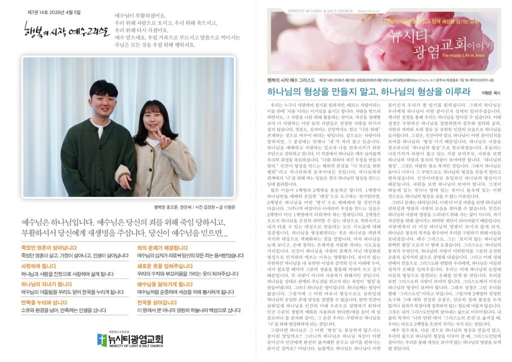 “하나님의 형상을 만들지 말고, 하나님의 형상을 이루라”