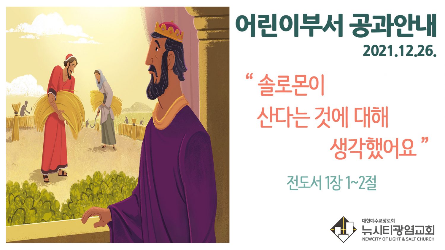 “솔로몬이 우리의 행복은 남들보다 많이 있고 높이 올라가는 게 아니라 하나님께 달려 있다고 했어.