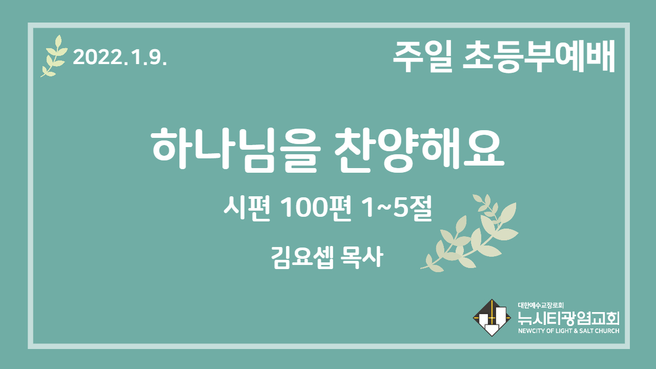 22.1.9. 초등부 영상예배 “하나님을 찬양해요”(시 100:1~5)