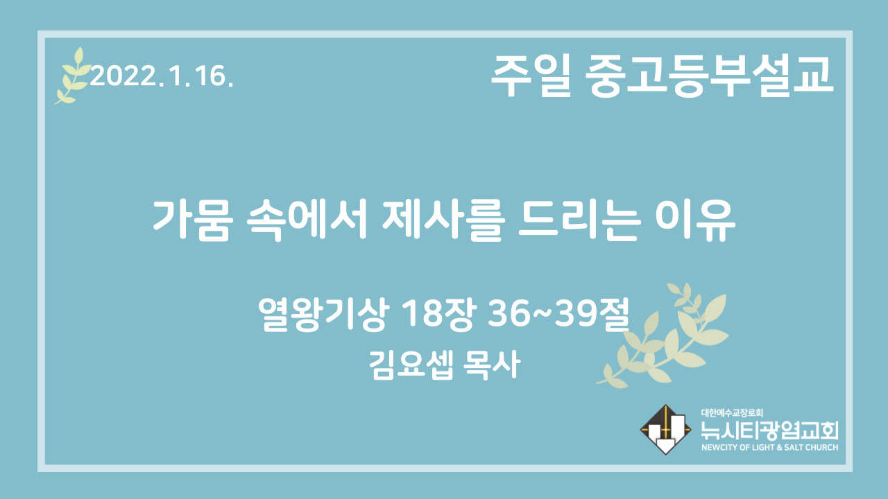 22.1.16. 중고등부 설교 “가뭄 속에서 제사를 드리는 이유”(왕상 18:36~39)