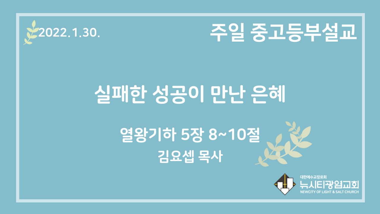 22.1.30. 중고등부 설교 “실패한 성공이 만난 은혜”(왕하 5:8~10)