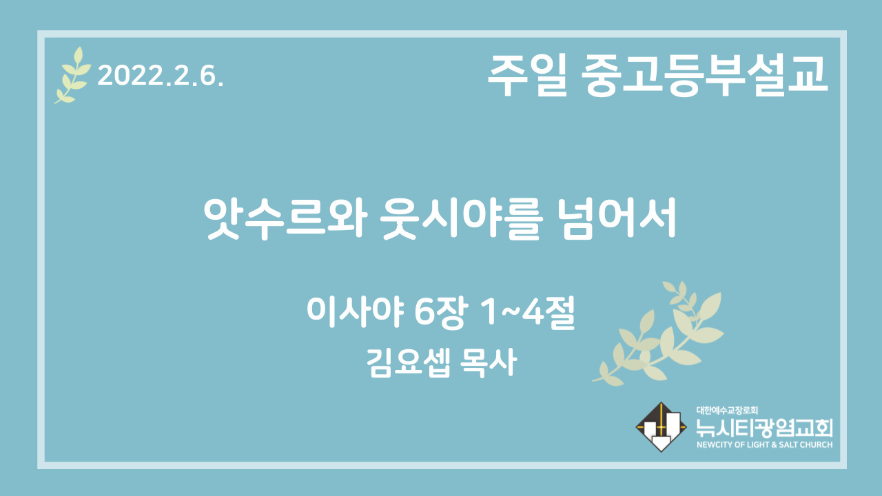 22.2.6. 중고등부 설교 “앗수르와 웃시야를 넘어서”(사 6:1~4)