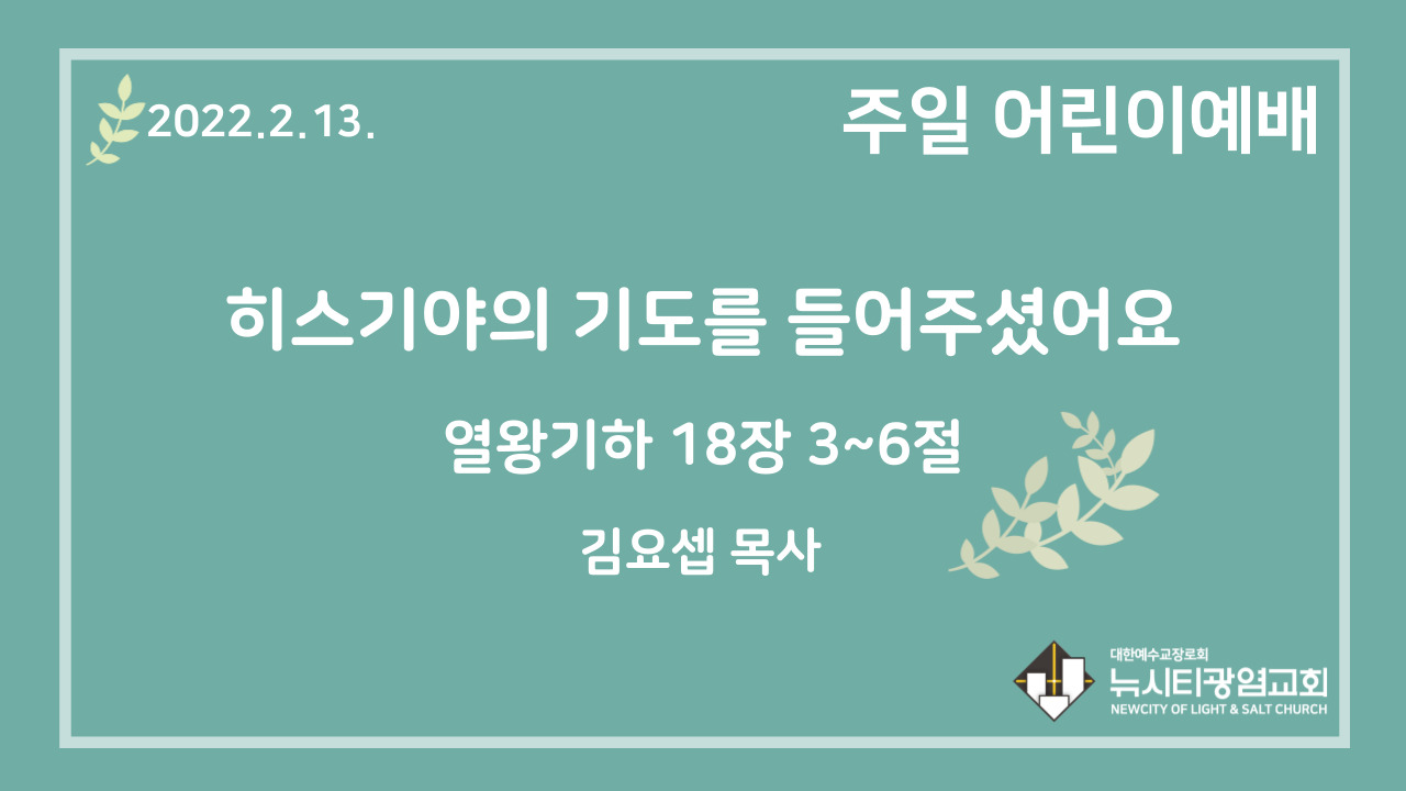 22.2.13. 어린이 영상 예배 “히스기야의 기도가 응답되었어요”(왕하 18:3~6)
