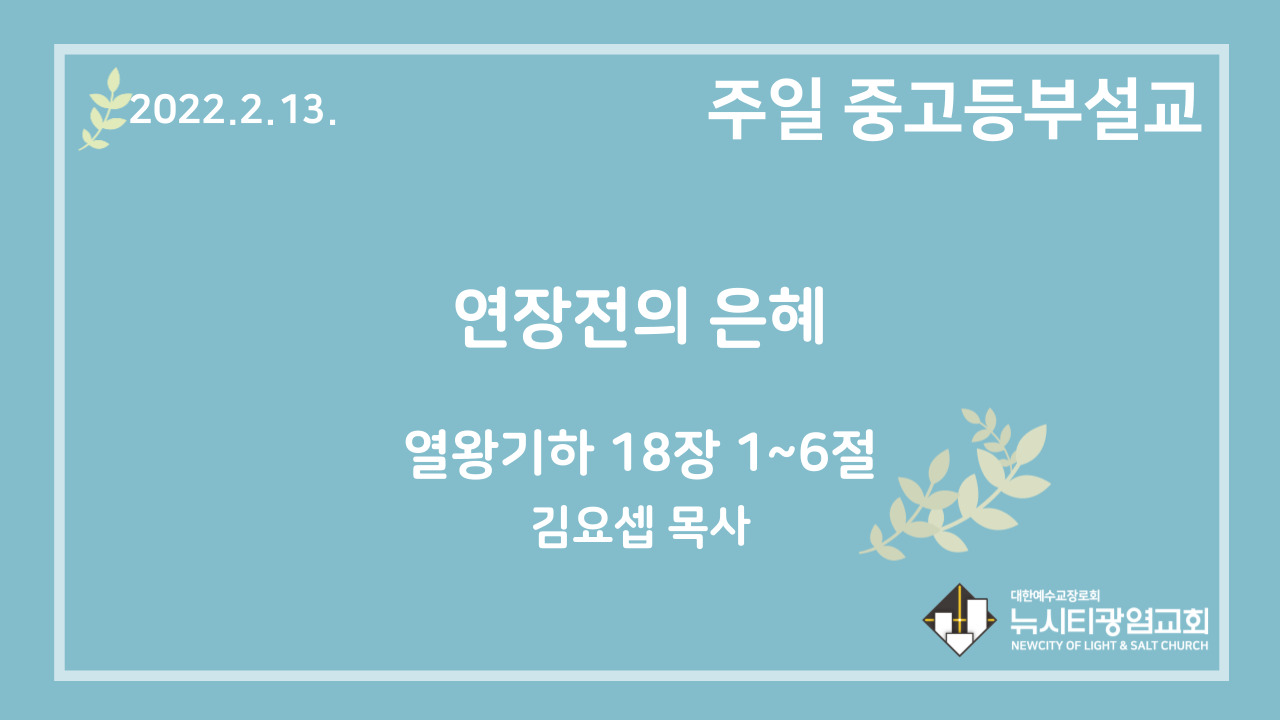 22.2.13. 중고등부 설교 “연장전의 은혜”(왕하 18:1~6)