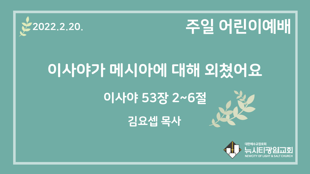 22.2.20. 어린이 영상 예배 “이사야가 메시아에 대해 외쳤어요”(사 53:2~6)