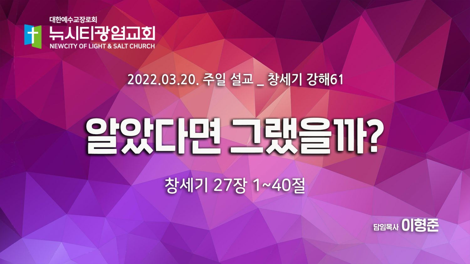 “알았다면 그랬을까?”_ (창 27:1-40)_ 2022.03.20_ 창세기 강해 61