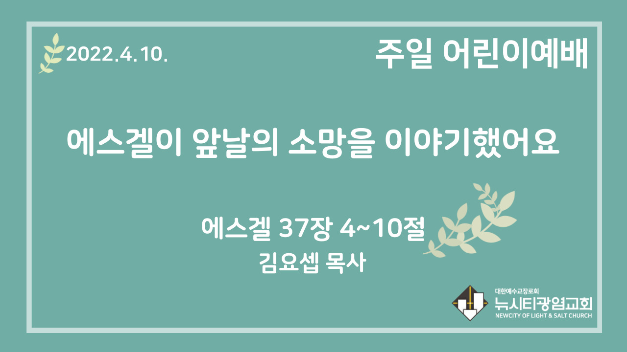 22.4.10. 어린이 영상 예배 “에스겔이 앞날의 소망을 이야기했어요”(겔 37:4~10)