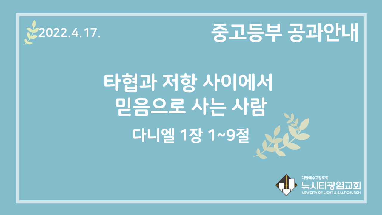 이번 주 본문은 다니엘서 1장 내용입니다.