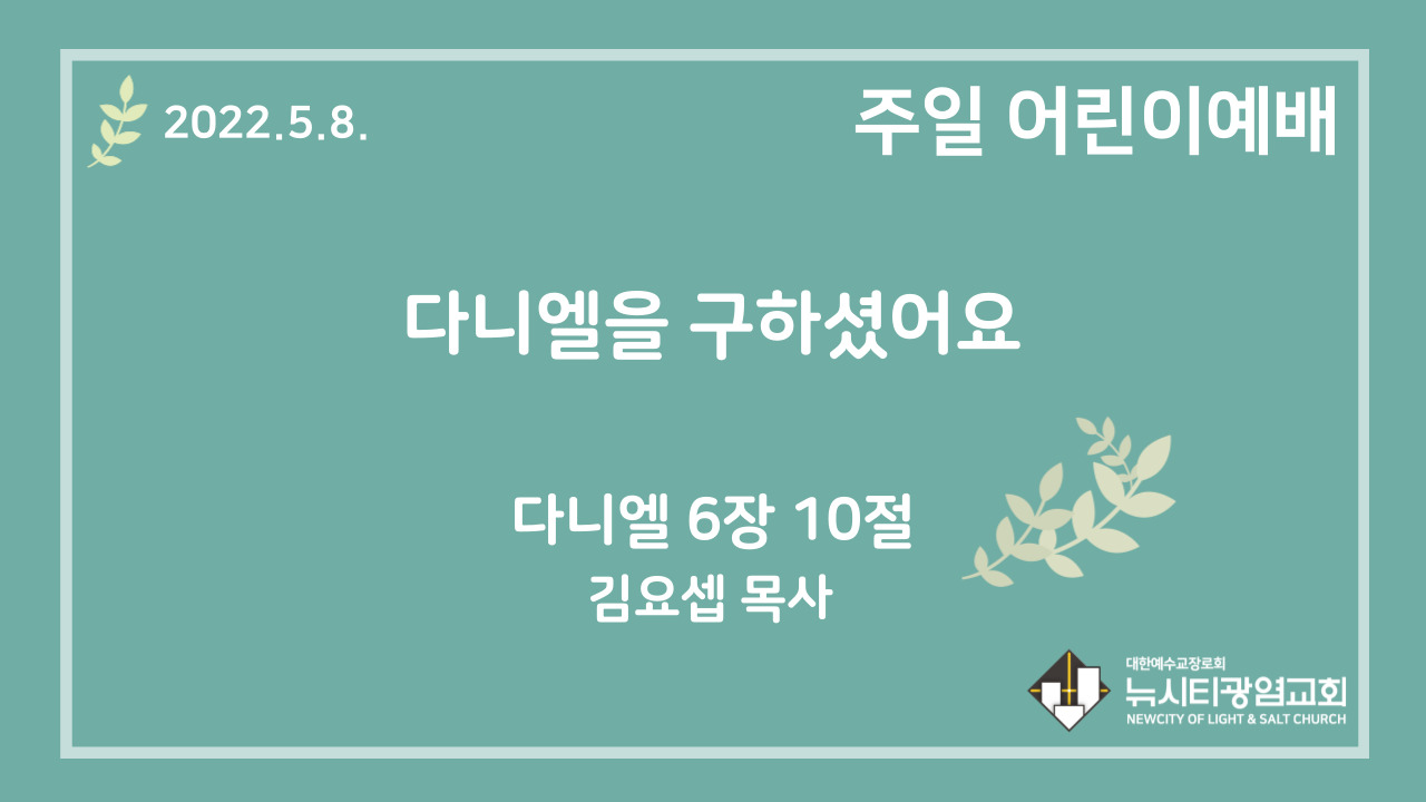 22.5.8. 어린이 영상 예배 “다니엘을 구하셨어요”(단 6:10)