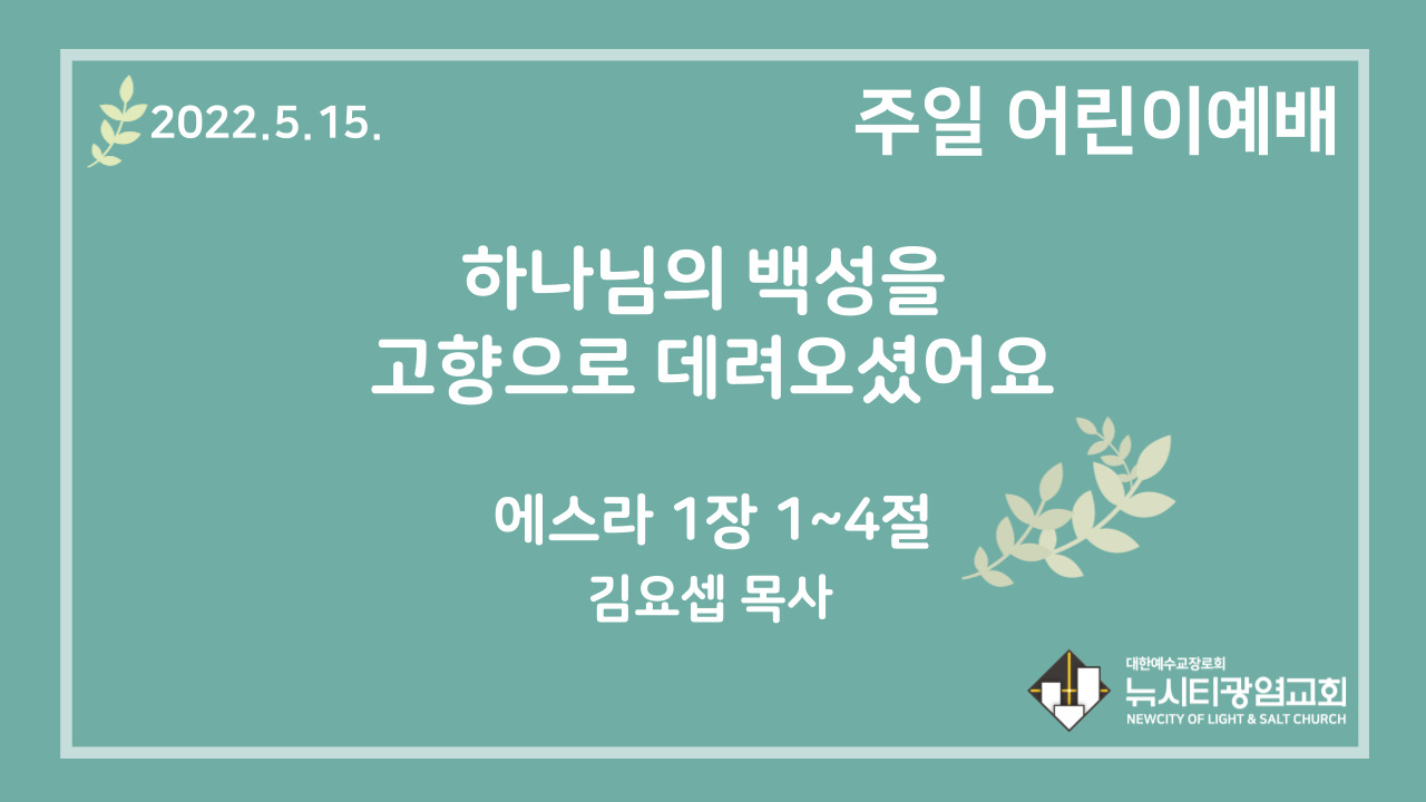 22.5.15. 어린이 영상 예배 “하나님의 백성을 고향으로 데려오셨어요”(스 1:1~4)