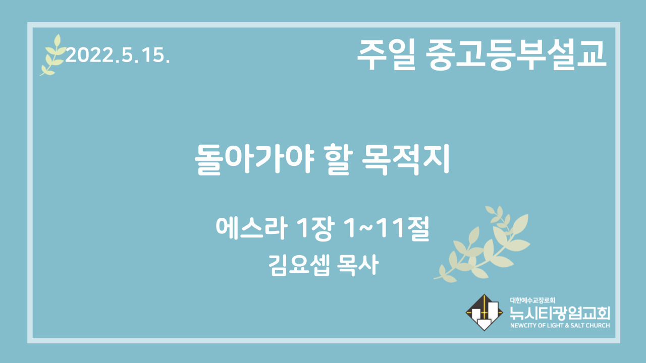 22.5.15. 중고등부 설교 “돌아가야 할 목적지”(스 1:1~11)
