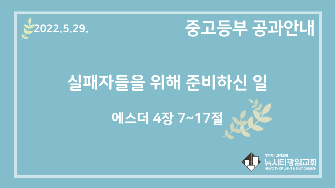 하나님은 실패한 우리를 진정한 모르드개이자 진정한 에스더이신 예수님을 준비하고 계셨습니다.