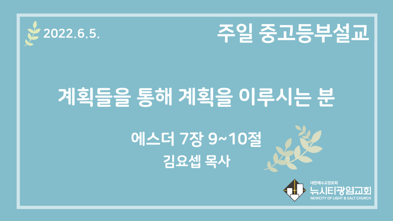 22.6.5. 중고등부 설교 “계획들을 통해 계획을 이루시는 분”(에 7:9~10)