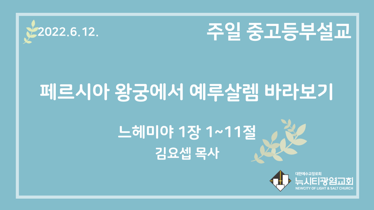 22.6.12. 중고등부 설교 “페르시아 왕궁에서 예루살렘 바라보기”(느 1:1~11)