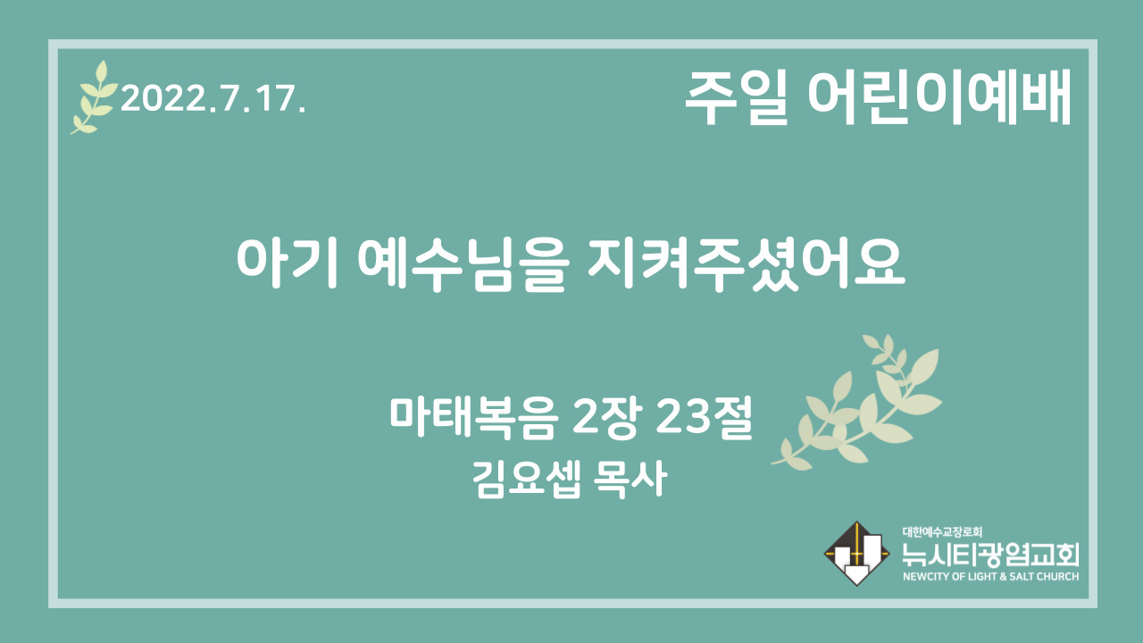 22.7.17. 어린이 영상 예배 “아기 예수님을 지켜주셨어요”(마 2:23)