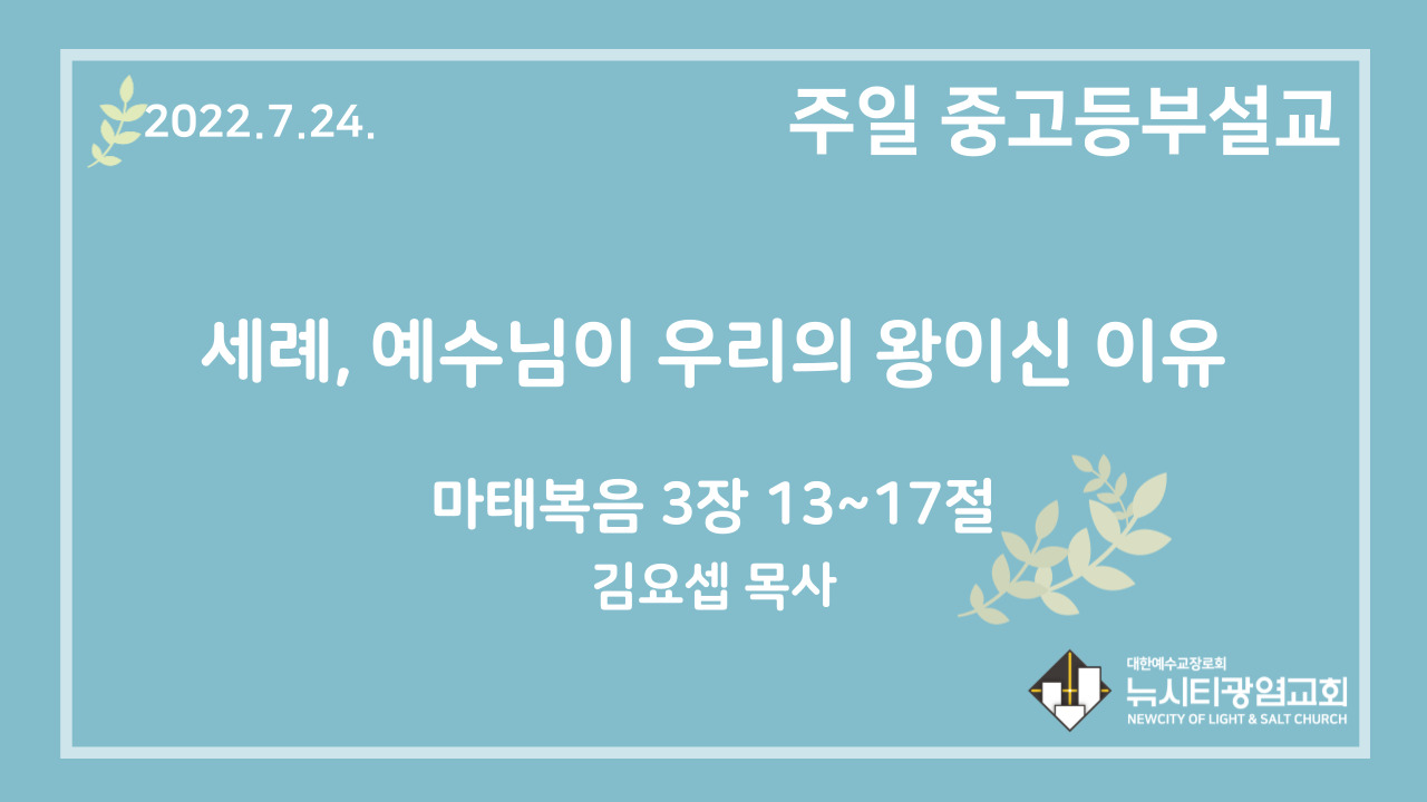 22.7.24. 중고등부 설교 “세례, 예수님이 우리의 왕이신 이유”(마 3:13~17)