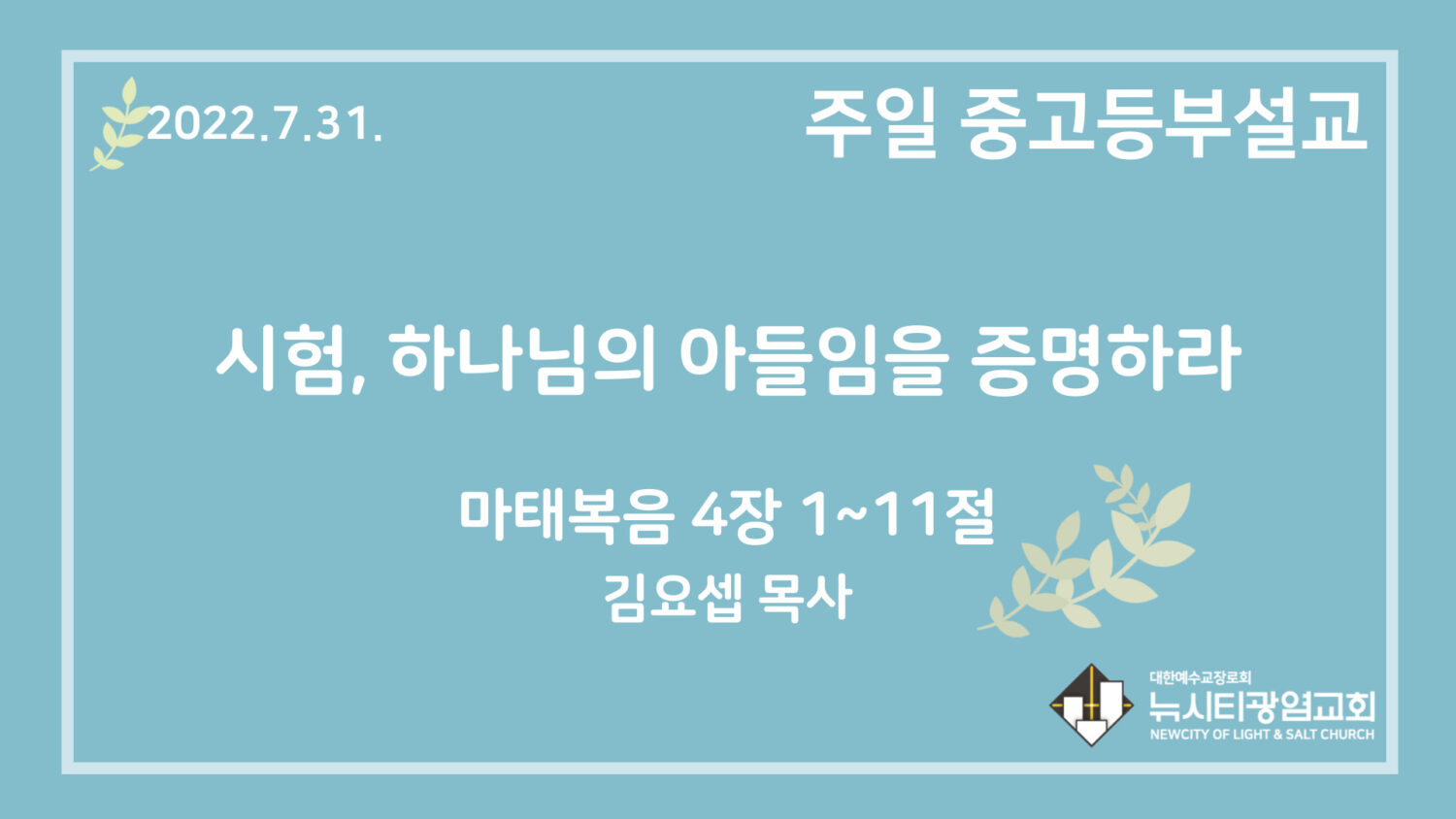 22.7.31. 중고등부 설교 “시험, 하나님의 아들임을 증명하라”(마 4:1~11)