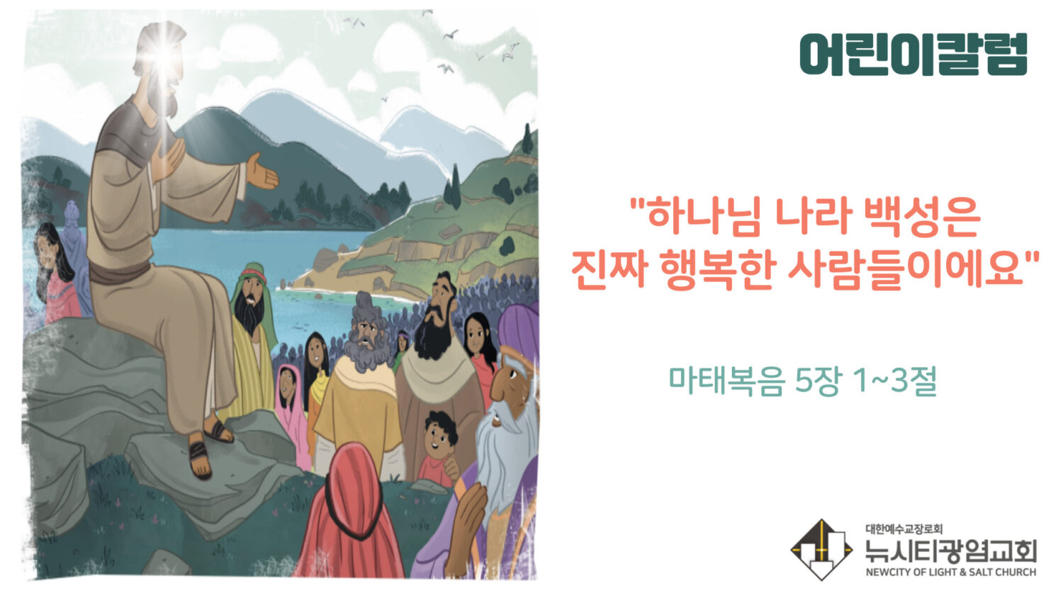 예수님은 산에서 제자들에게 행복한 하나님 나라 백성의 모습을 가르쳐 주셨어요.