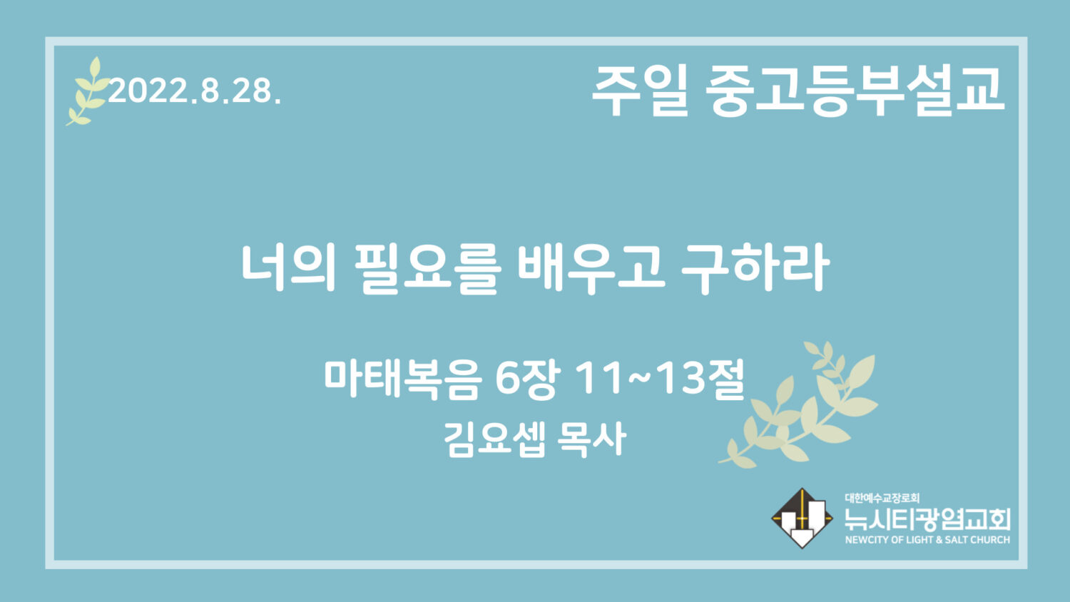 22.8.28. 중고등부 설교 “너의 필요를 배우고 구하라”(마 6:11~13)