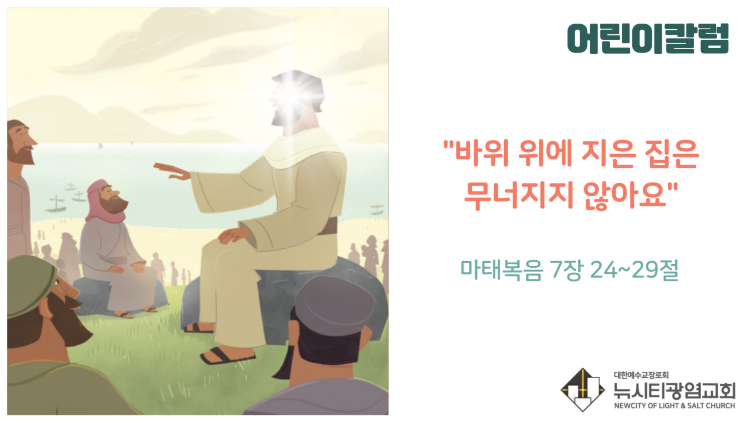 우리는 그 예수님이 무너지지 않는 반석 위에 지어주신 집, 교회에요.