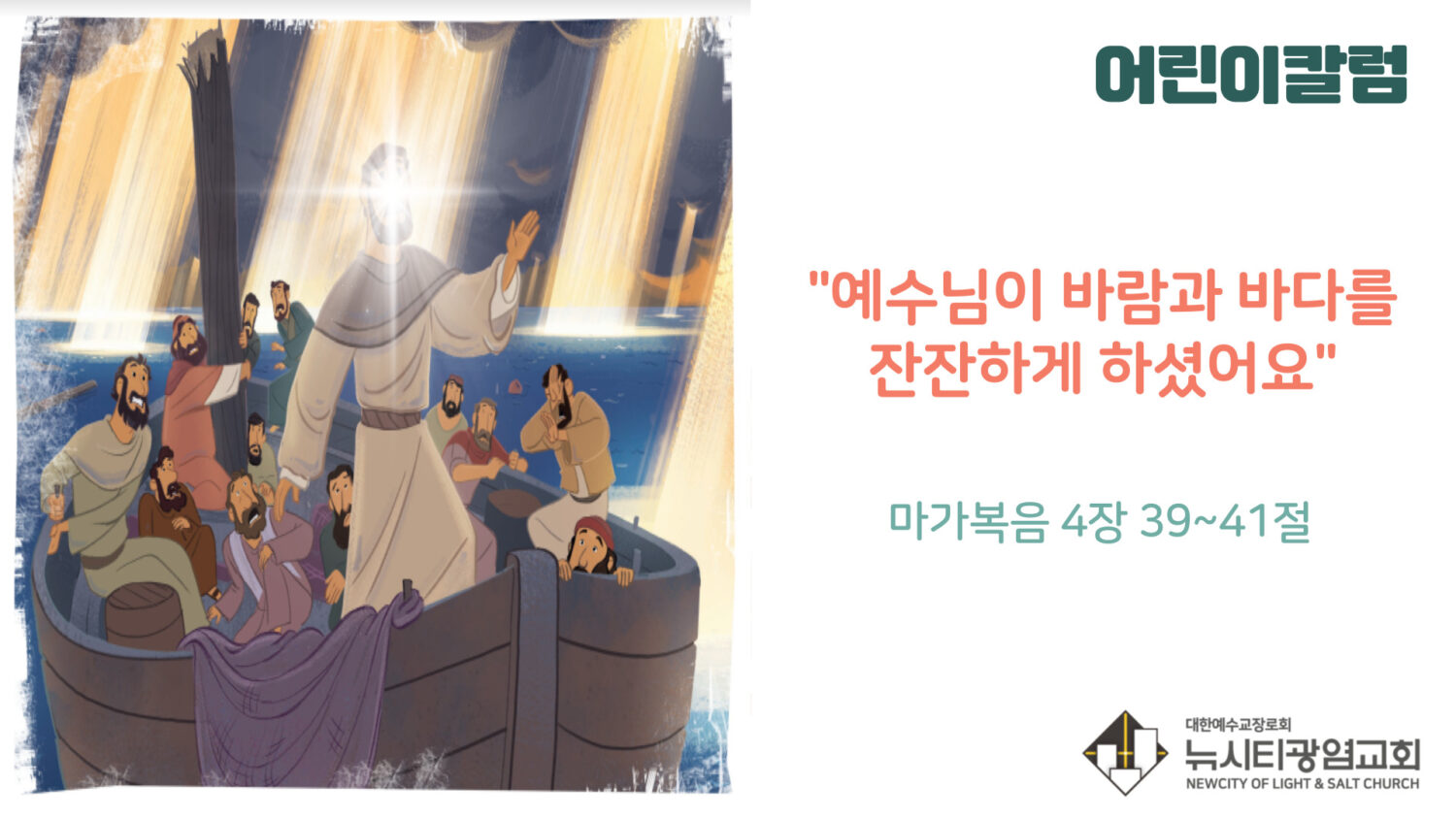 우리가 탄 배가 풍랑을 만날 때에도 평안할 수 있는 이유는, 풍랑보다 크신 예수님이 우리와 한 배를 타고 계시기 때문이에요.