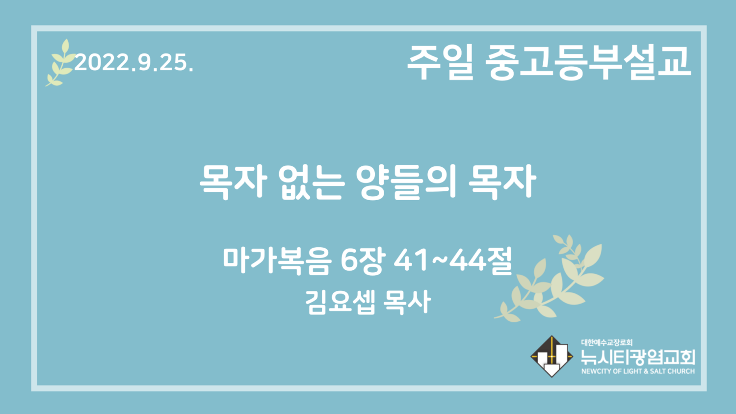 22.9.25. 중고등부 설교 “목자 없는 양들의 목자”