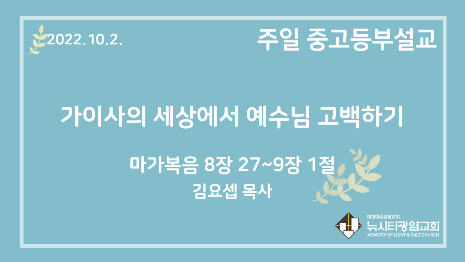 22.10.2. 중고등부 설교 “가이사의 세상에서 예수님 고백하기”(막 8:27~9:1)