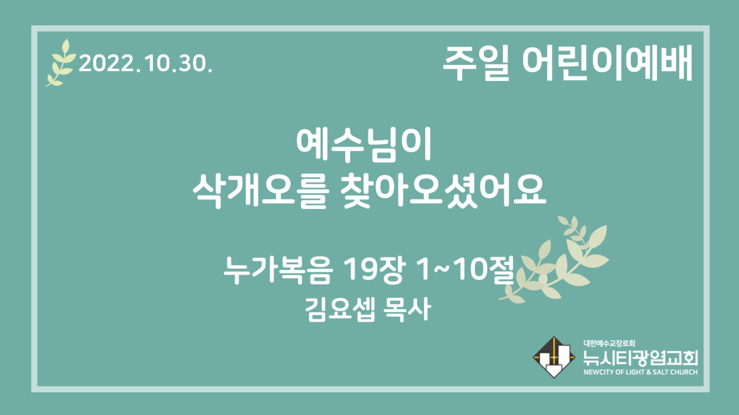 22.10.30. 어린이 영상 예배 “예수님이 삭개오를 찾아오셨어요”(눅 19:1~10)