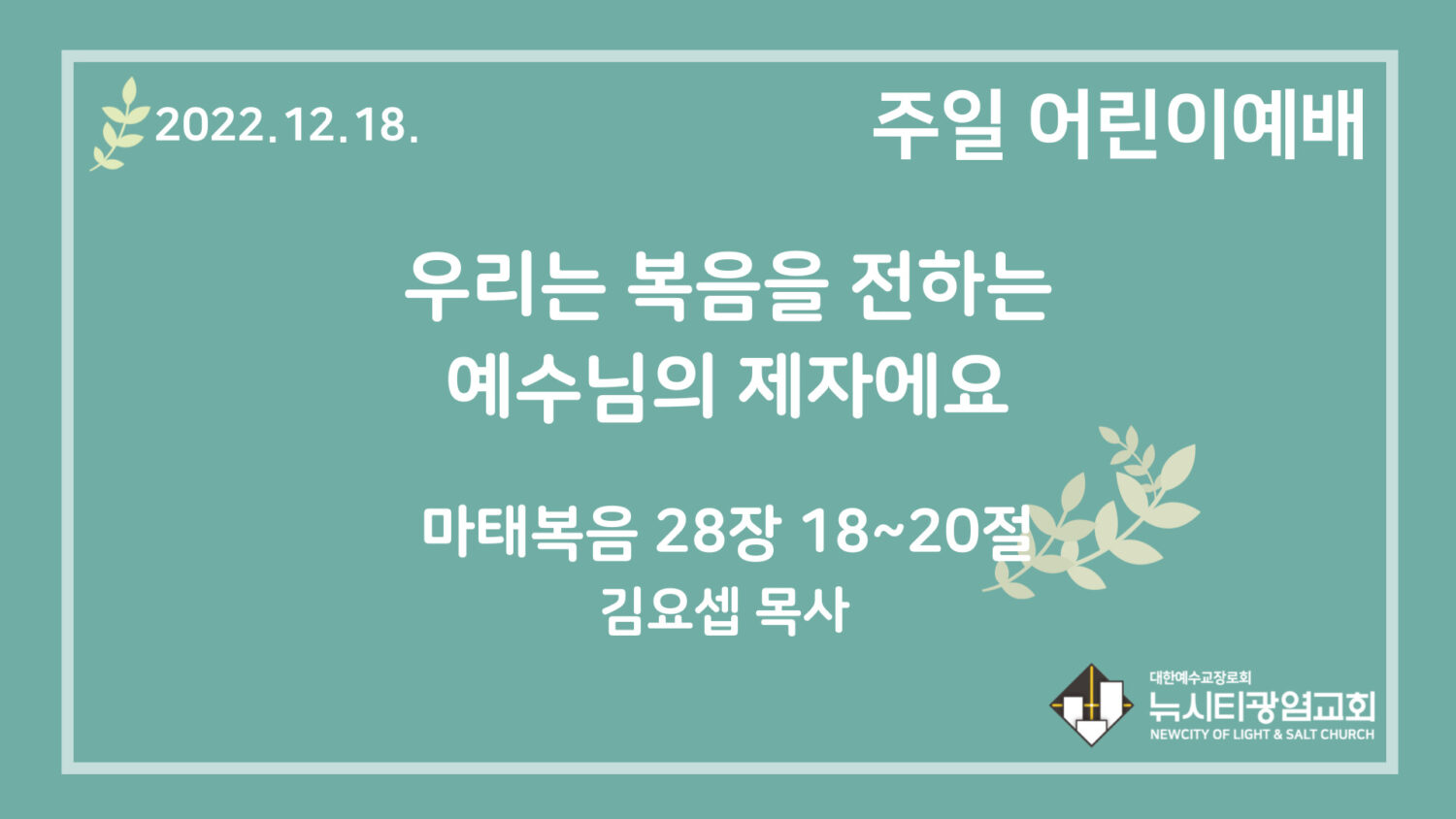 22.12.18. 어린이 영상 예배 “우리는 복음을 전하는 예수님의 제자에요”(마 28:18~20)