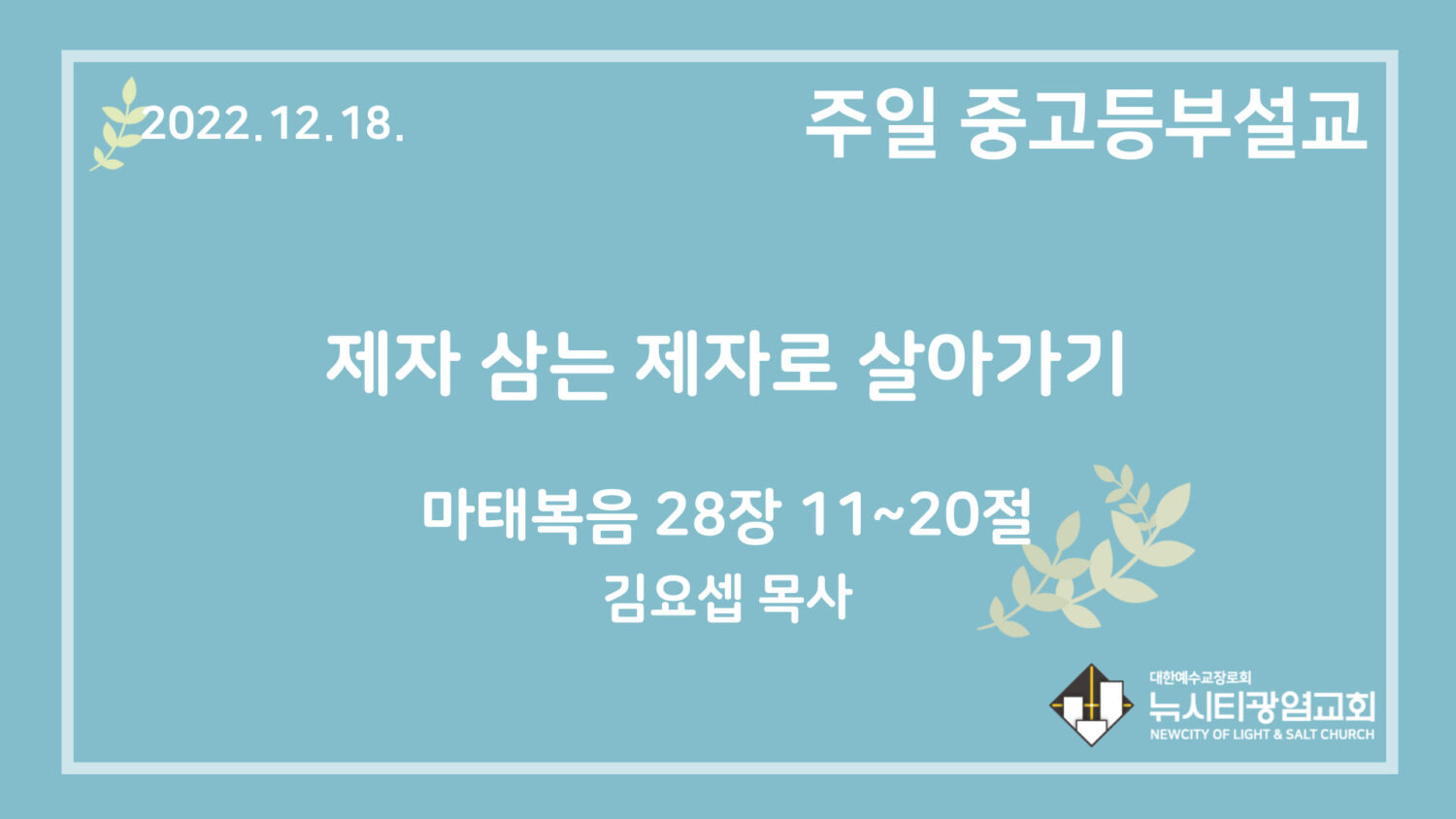 22.12.18. 중고등부 설교 “제자 삼는 제자로 살아가기”(마 28:11~20)