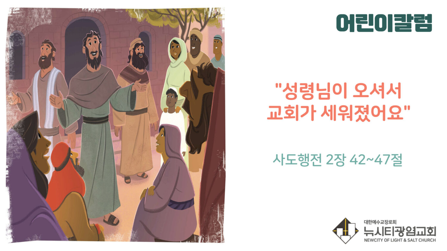 그리고 마침내 오순절날 성령이 오시고 난 뒤에도 그들은 한 공동체로 함께 살았어요.