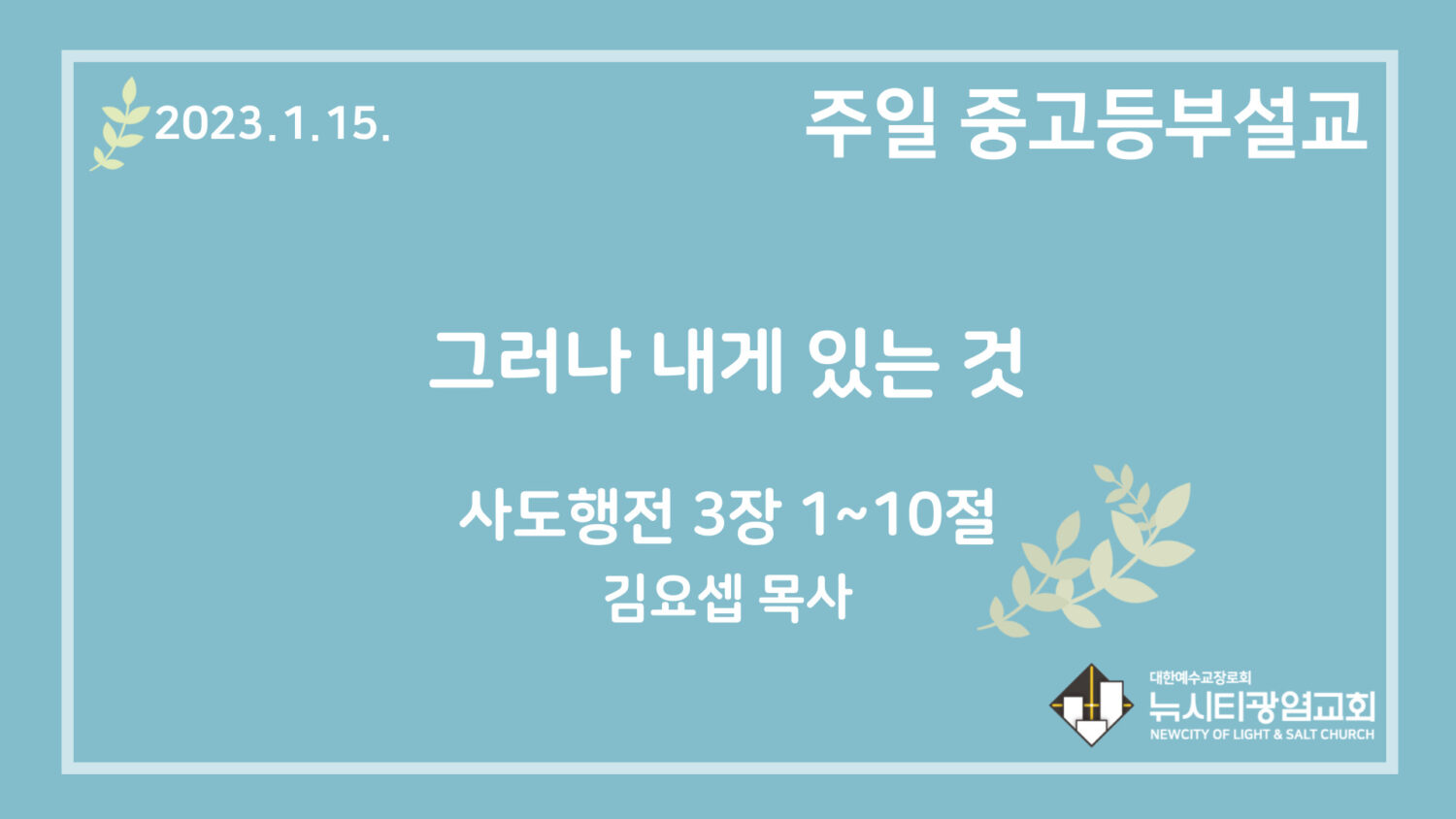 23.1.15. 중고등부 설교 “그러나 내게 있는 것”(행 3:1~10)