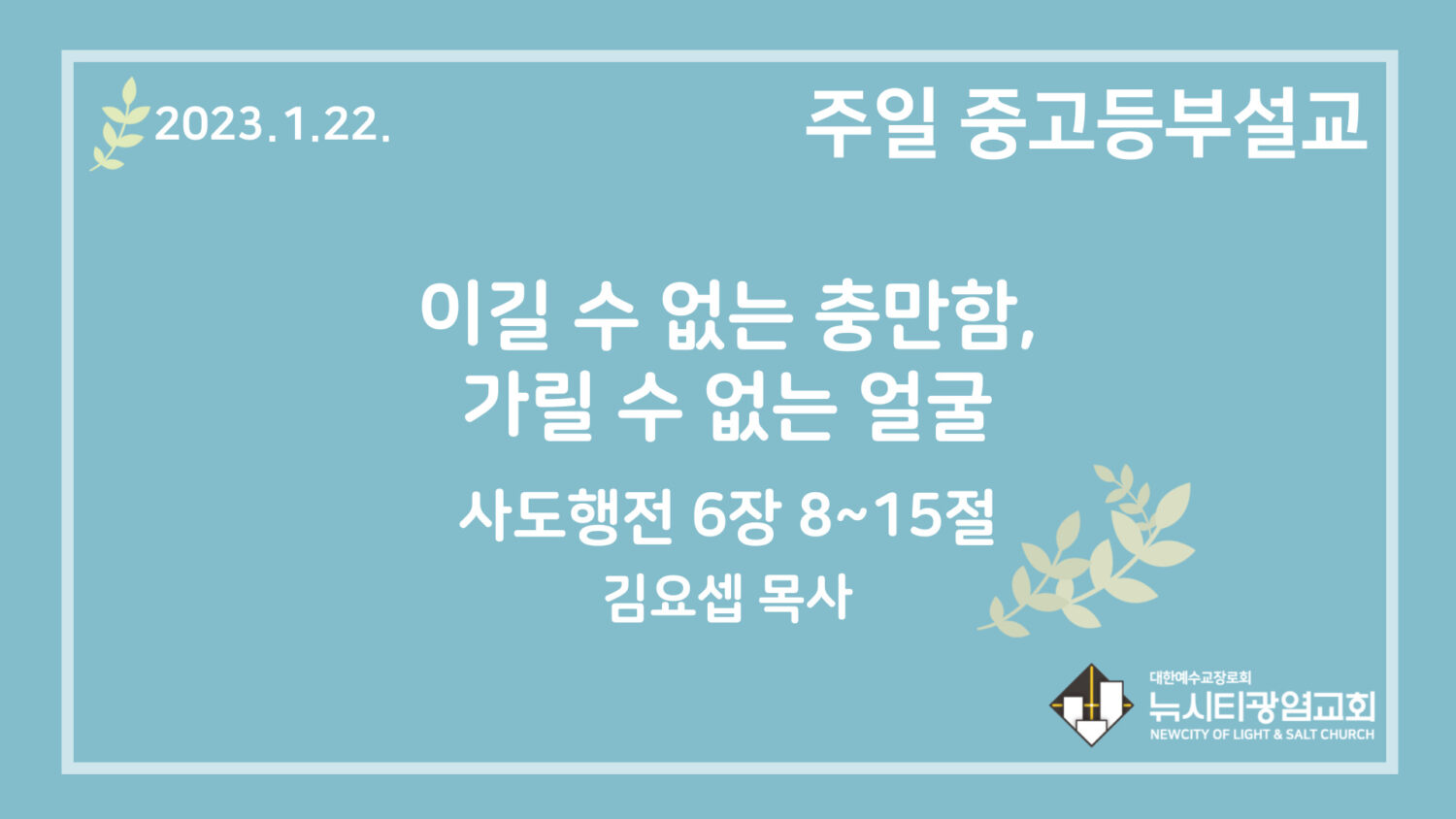 23.1.22. 중고등부 설교 “이길 수 없는 충만함, 가릴 수 없는 얼굴”(행 6:8~15)
