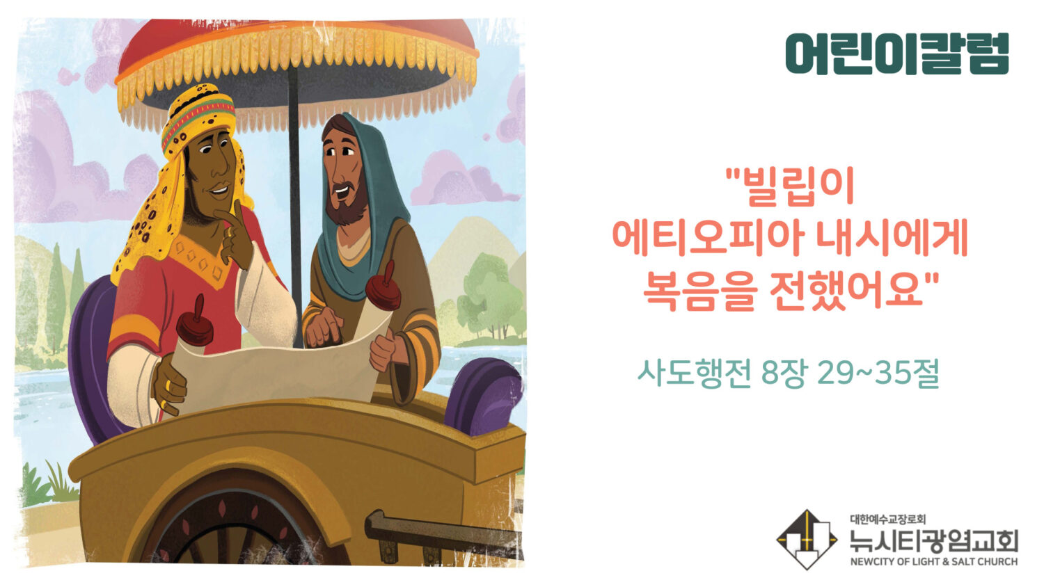 빌립을 사랑하신 하나님은 빌립을 통해 에티오피아 내시 한 사람을 찾아가기 원하셨어요.