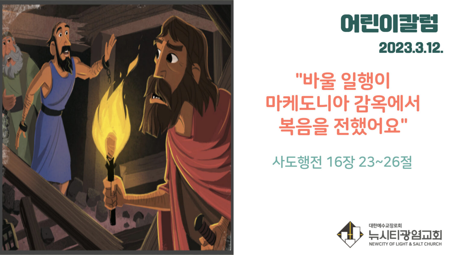 바울과 실라가 감옥에서 하나님을 찬양할 때 지진이 나고, 감옥문이 열리며 발에 묶인 쇠사슬이 풀렸어요.