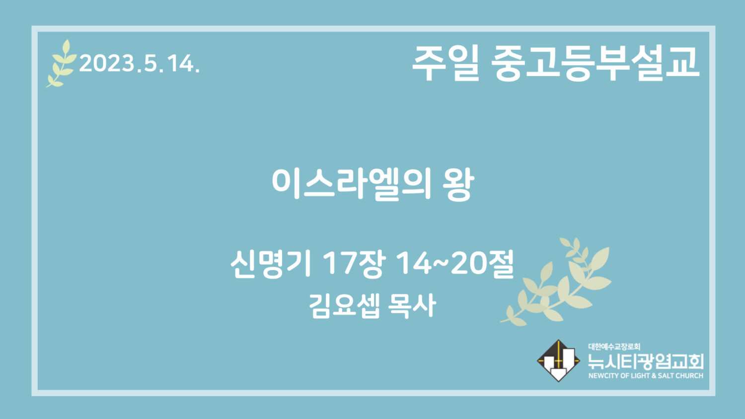 23.5.14. 중고등부 설교 “이스라엘의 왕”(신 17:14~20)