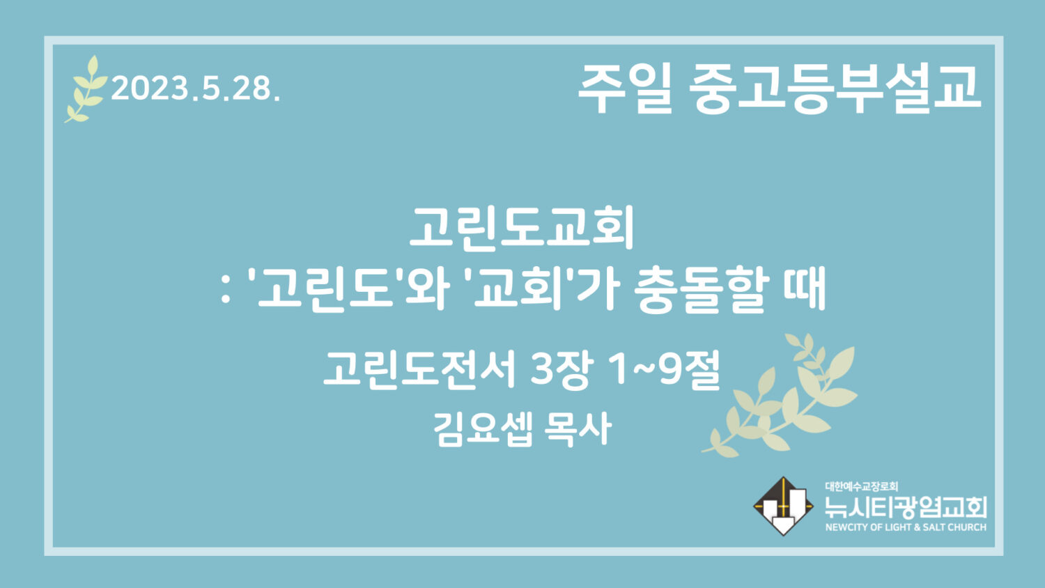 23.5.28. 중고등부 설교 “고린도교회: ‘고린도’와 ‘교회’가 충돌할 때”(고전 3:1~9)