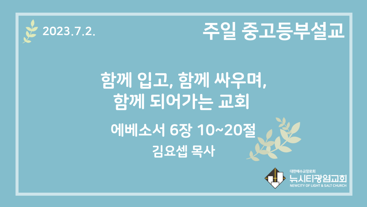 23.7.2. 중고등부 설교 “함께 입고, 함께 싸우며, 함께 되어가는 교회”(엡 6:10~20)