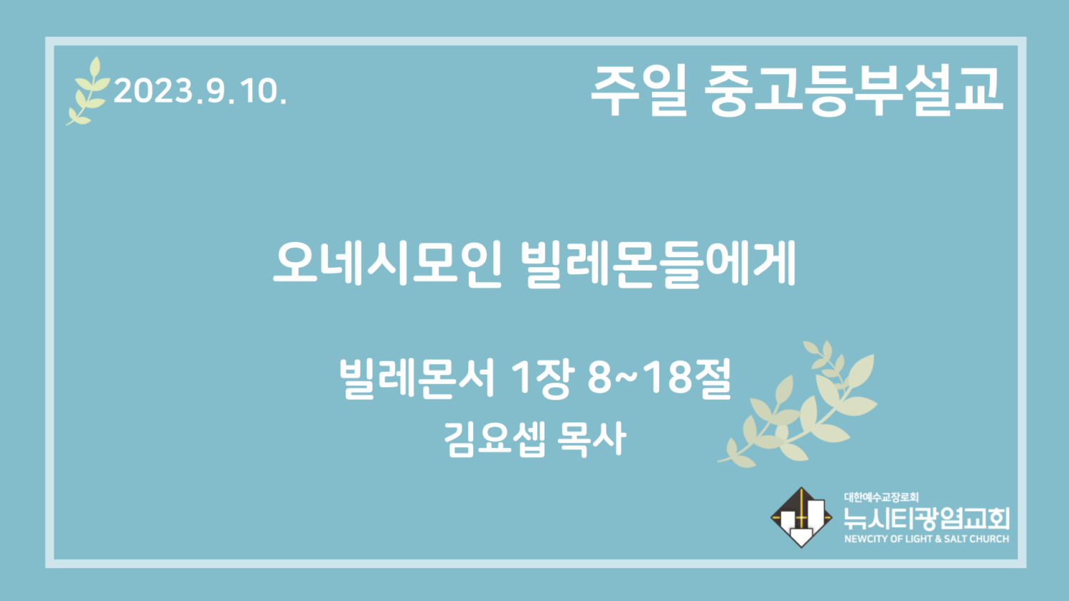 23.9.10. 중고등부 설교 “오네시모인 빌레몬들에게”(몬 1:8~18)