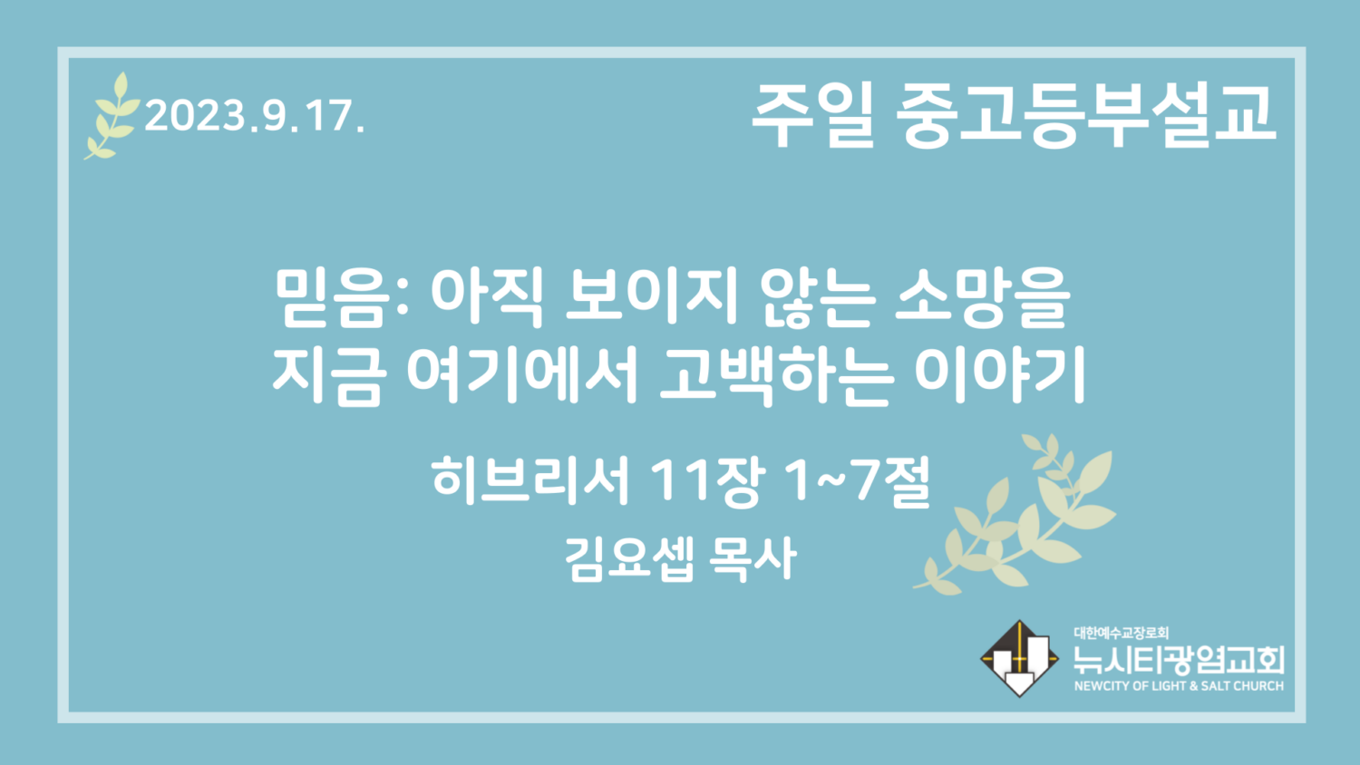 23.9.17. 중고등부 설교 “믿음: 보이지 않는 소망을 지금 여기에서 고백하는 이야기”(히 11:1~7)