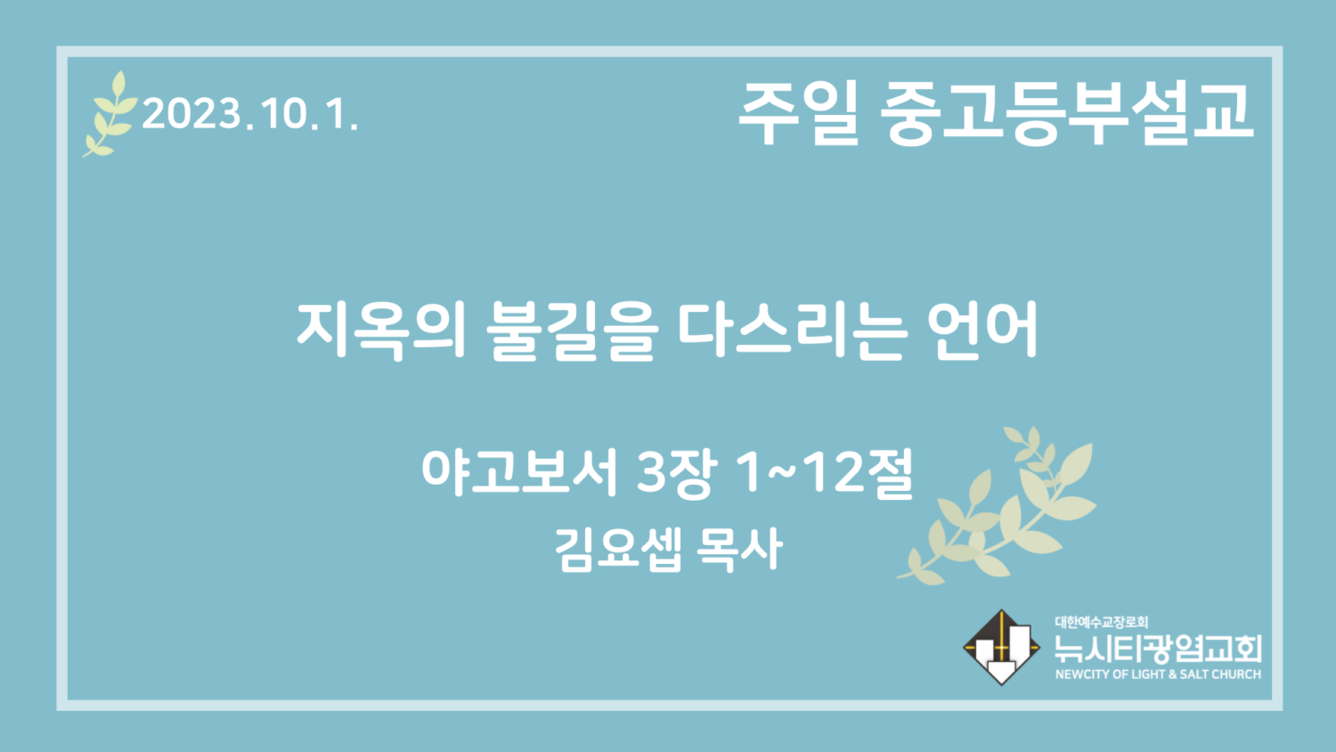 23.10.1. 중고등부 설교 “지옥의 불길을 다스리는 언어”(약 3:1~12)