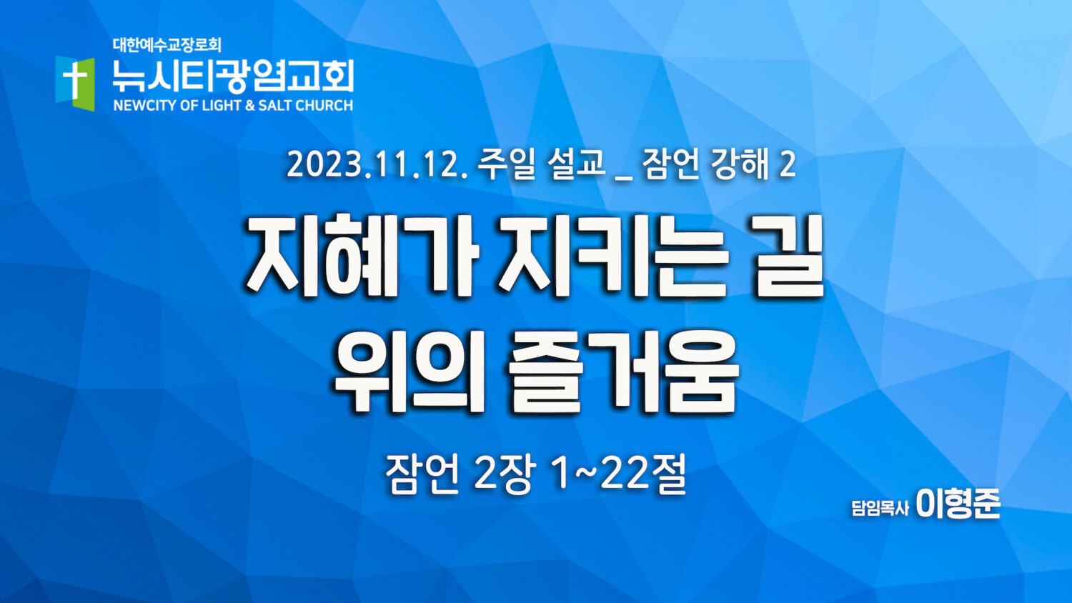 “지혜가 지키는 길 위의 즐거움” _(잠2:1-22)_23.11.12_잠언 강해2