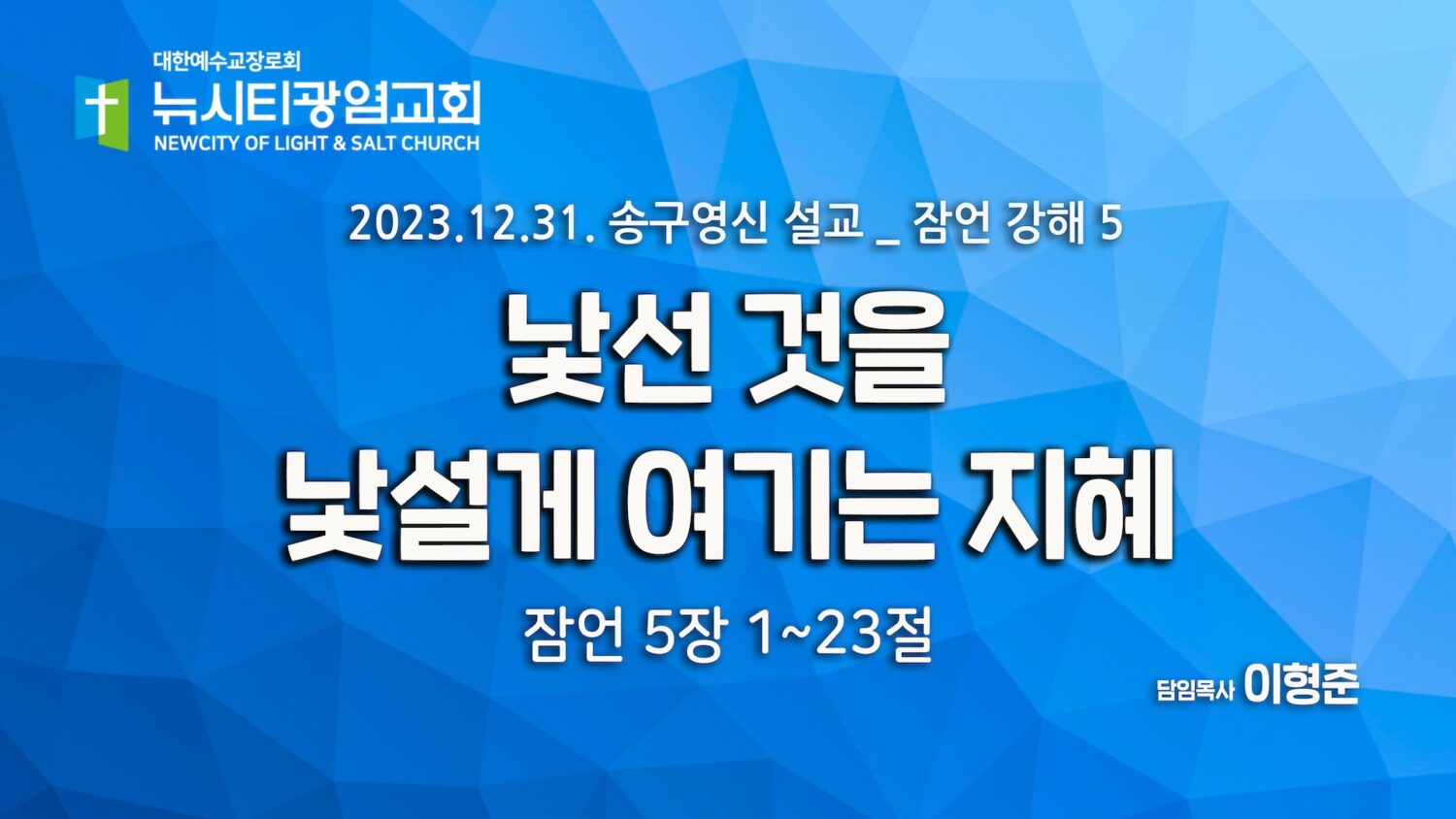 “낯선 것을 낯설게 여기는 지혜”_(잠5:1-23) _23.12.31_송구영신_잠언 강해 5