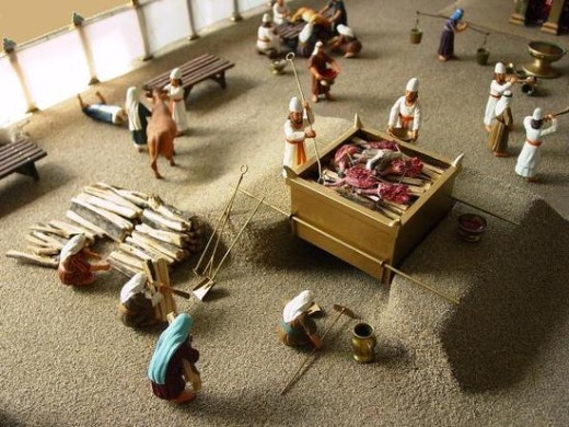 다윗은 제사로 드릴 제물을 각을 떠 번제단 위에 늘어놓고 하나님께 드리는 예배를 참관합니다.