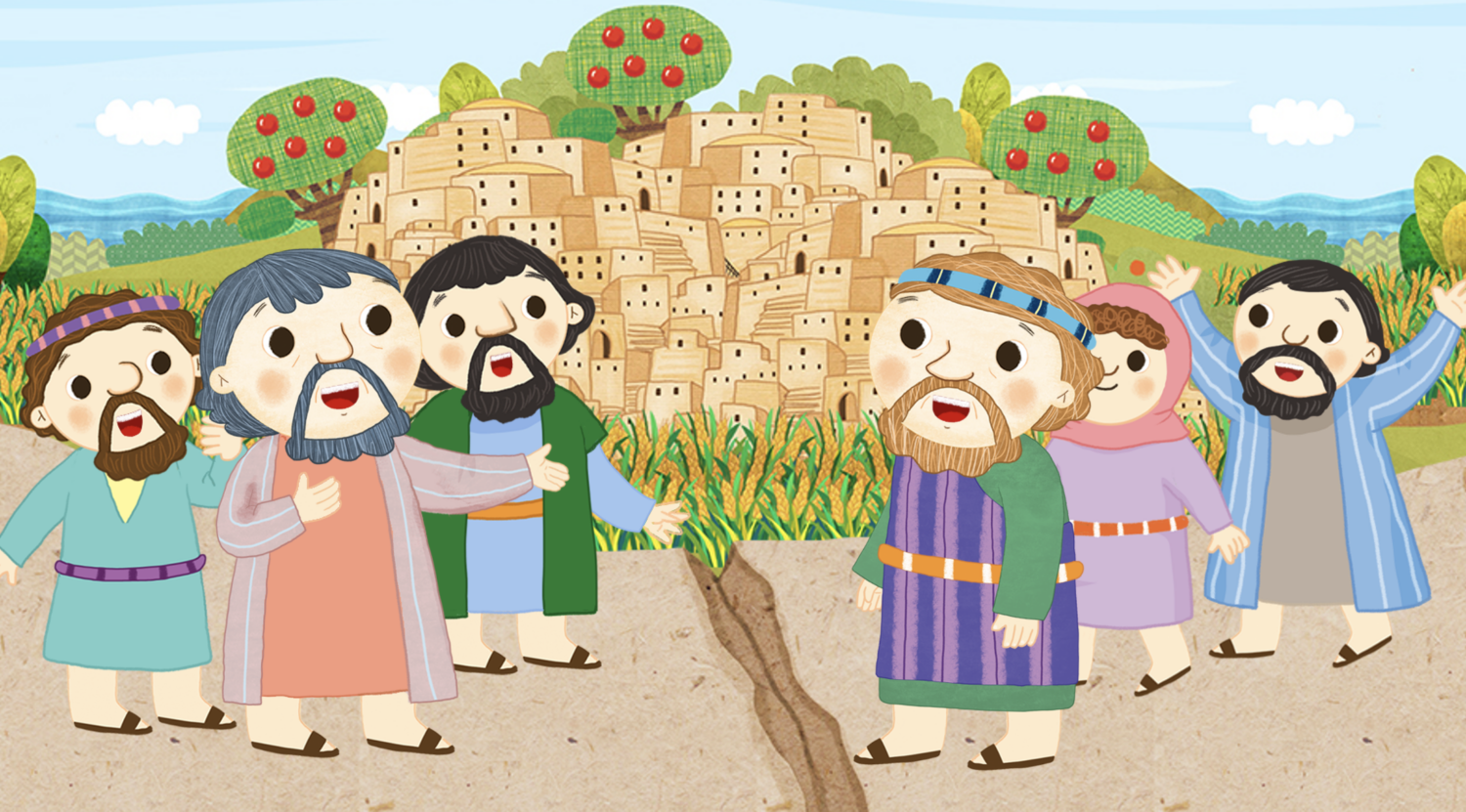 여기에는 크고 튼튼한 성읍이 있고 키가 크고 힘센 가나안 사람들이 살고 있었어요.