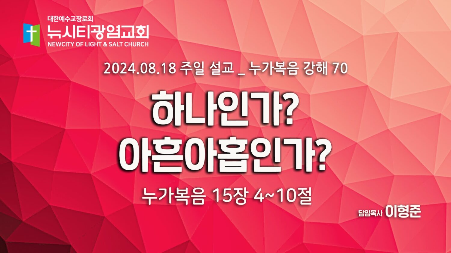“하나인가? 아흔아홉인가?” _(눅15:4-10)_24.08.18_누가복음 강해 70