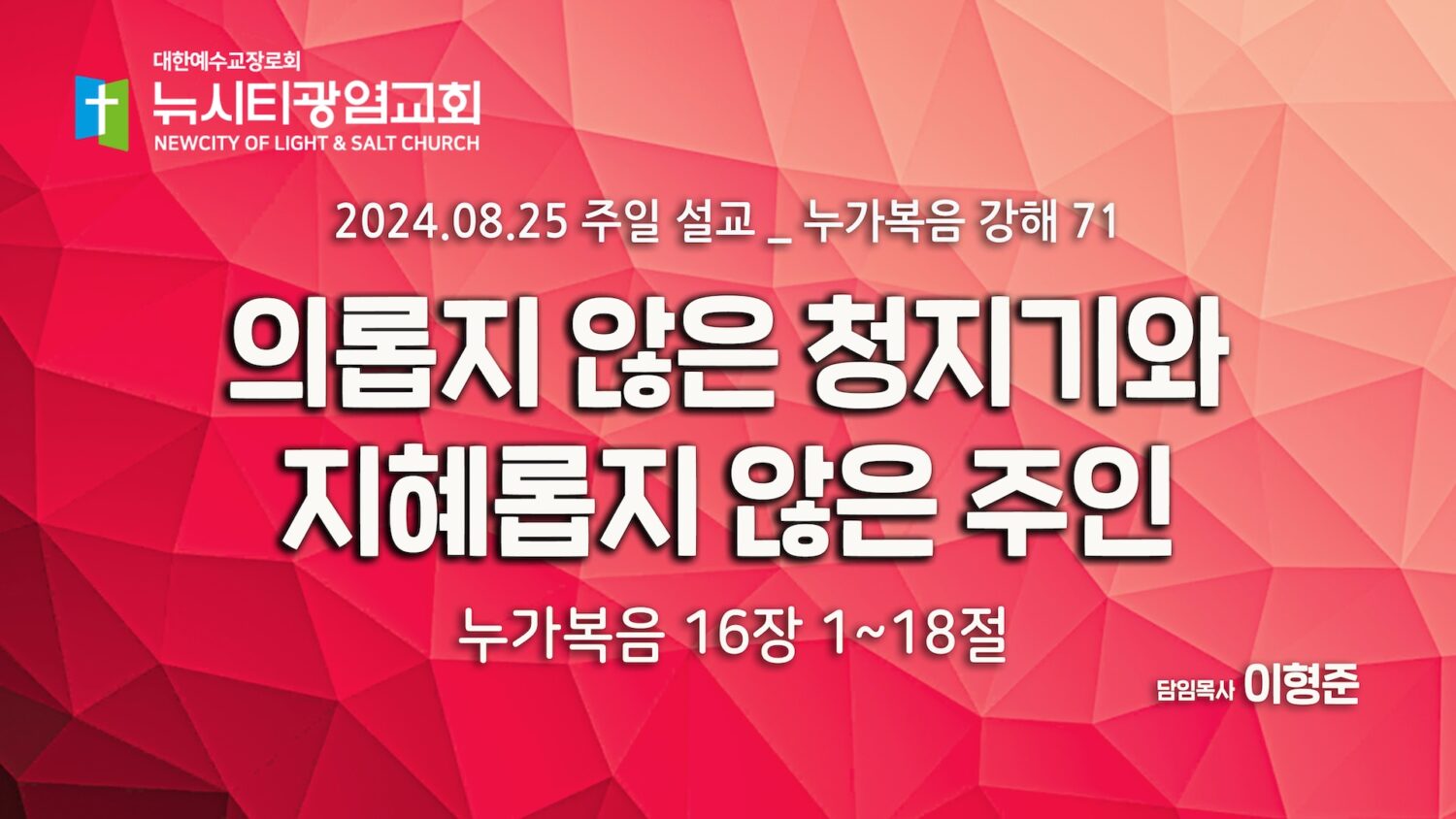 “의롭지 않은 청지기와 지혜롭지 않은 주인” _(눅16:1-18) _24.08.25_ 누가복음 강해 71