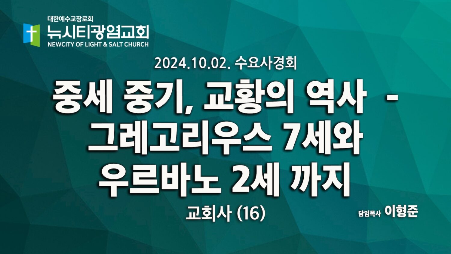 24.10.02_수요사경회_교회사(16)_ “중세 중기, 교황의 역사 – 그레고리우스7세와 우르바노2세 까지”