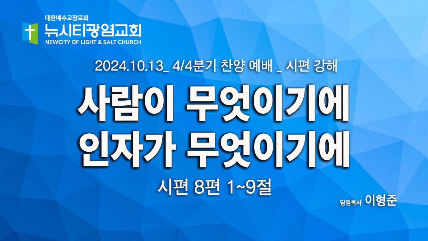 “사람이 무엇이기에, 인자가 무엇이기에” _(시8:1-9) _24.10.13 _시편 강해